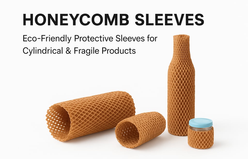 Honeycomb sleeves are cylindrical, expandable kraft paper structures designed to provide cushioning and surface protection for bottles, jars, and cylindrical components.