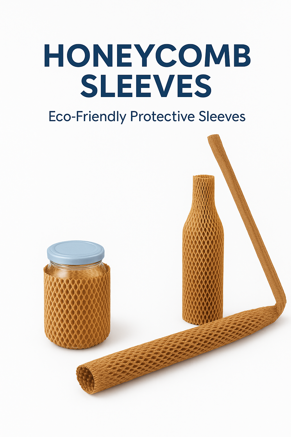 Honeycomb Sleeves are expandable kraft paper mesh sleeves designed to protect bottles, jars, candles, cosmetics, and other cylindrical fragile items. They create a 3D cushioning layer that absorbs shocks during handling and shipping.